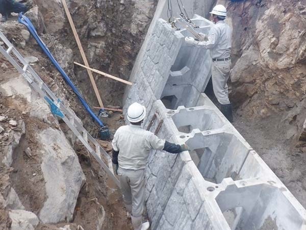 ①背面の掘削量、埋め戻し量を少なくする為施工時間の短縮ができ、安定している地山を極力掘削しない事で安全にもつながります。